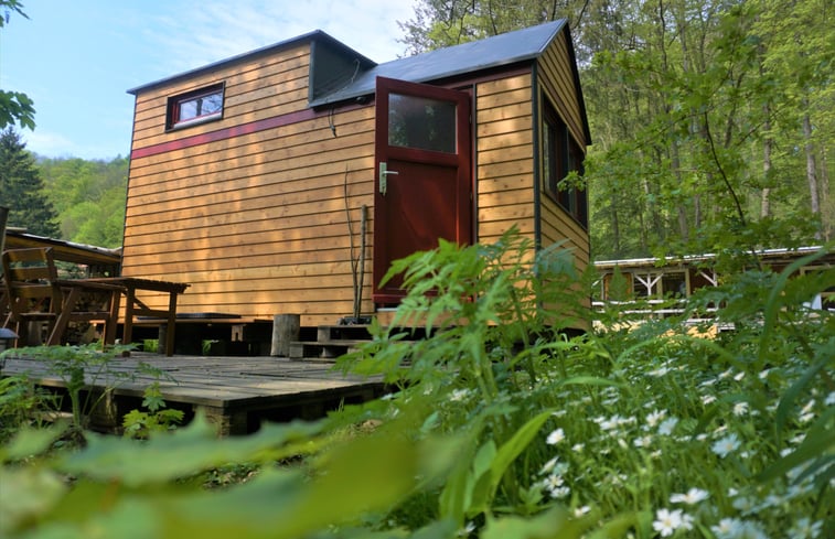 Klein natuurhuisje, midden in het bos, compleet ingerichte keuken met zithoek, woon/slaapkamer, badkamer, groot terras, buitengrill, 2 fietsen bij behoefte