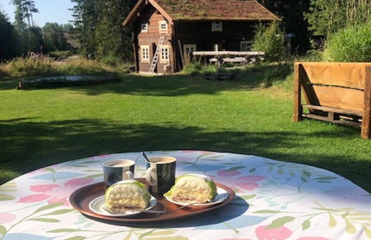 This cottage is modeled after the huts in the Nordic mountains - rustic, cozy and with lots of wood. Life usually takes place in front of the house. It smells of nature and freedom. The cottage is equipped with a sofa, a kitchenette, a dining area and a small bathroom with toilet, sink and shower. Upstairs in the loft there is a doublebed. An additional Stuga expand the space with two beds (about 18 square meters), so that the space offers a relaxed family vacation. A terrace with great lake...